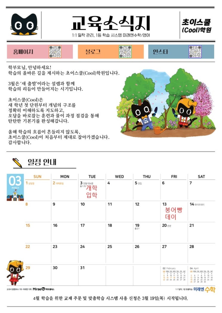 상현동 영어 수학 초이스쿨학원 3월 교육소식지