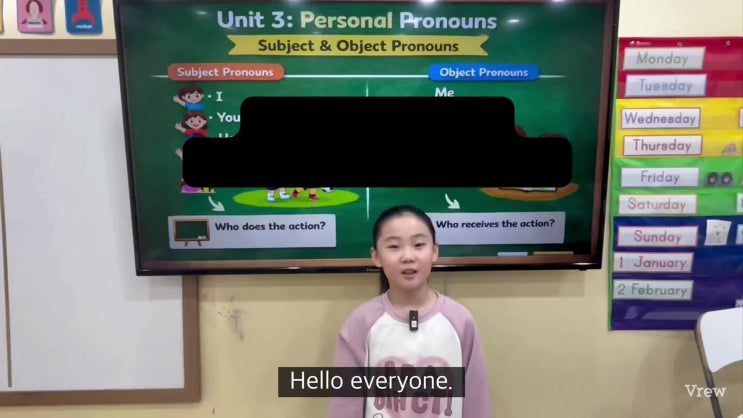 안녕하세요 이번 달 JES 530반 발표 활동 Personal Pronouns 소식을 전해드립니다 ✨ 이번 발표에서는 인칭대명사(Personal Pronouns) 중에서도 **주격(Subject pronouns)과 목적격(Object pronouns)**의 차이를 영어로 설명하는 활동을 진행했습니다. 아이들은 개념 설명 → 주격과 목적격 비교 → 문장 속 위치 확인 → 예문 제시 의 흐름에 맞춰 발표를 준비했습니다. 발표 준비 과정 Listen & Repeat / Shadowing 연습 문법을 영어로 설명하는 문장 구조를 반복 연습하며, 또박또박 설명하는 말하기 연습을 충분히 했습니다. “Personal pronouns change depending on their position.” “Subject pronouns are....... <img src="https://phinf.pstatic.net/image.nmv/blog_2026_03_05_3803/qxJcCmrjgu_01.jpg?type=f480x480" />