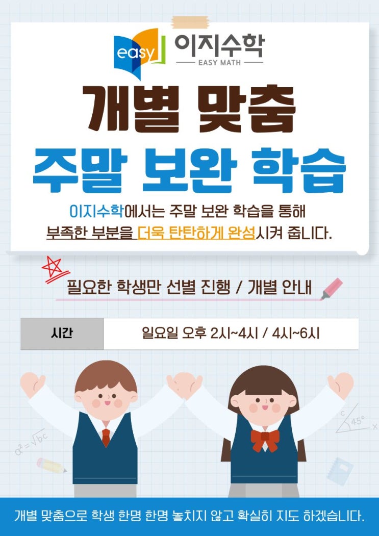 주말까지 책임지는 마산동 이지수학학원, 주말 보완학습 시작합니다.