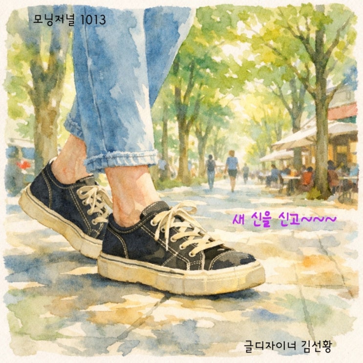 #가볍고편한 #국민운동화 #오늘의글감 #글디자이너_김선황 여기저기 눈에 보입니다. * 2026년 3월 14일 토요일 모닝저널 1013 ☀️ 국민신발 어제 아침, 선물 받은 신발을 처음 신고 수영장에 갔습니다. 시누가 미리 보낸 생일 선물입니다. 3월 말에 시댁 식구들 모일 때 단체로 맞춰 신자며 선물해 준 신발입니다. 검은색 캔버스 운동화인데 아이보리색 스티치로 박음질되어 있습니다. 시누는 선물 보내기 전에 ‘못 생겼는데 편한 신발’이라고 소개했습니다. 대신 가벼워서 신으니 좋더라고 평가했지요. 수영장 신발장 앞에서 신발을 벗어 넣으려다 멈칫했습니다. 바로 옆 칸에 똑같은 신발이 있었기 때문입니다. 검은 캔버스에 아이보리 스티....... <img src="https://blogthumb.pstatic.net/MjAyNjAzMTRfODYg/MDAxNzczNDUzNTQ3ODM1.U6_UpRYvDIvx_yuhAUU91nXdVbcWGpDEuehRdCMzx8Ig.aAXFYB3ptqGxu43IKw9jJ5hQivmnZ5-mwBEdaVhdtGAg.JPEG/900%A3%DF20260314105617.jpg?type=s3" />