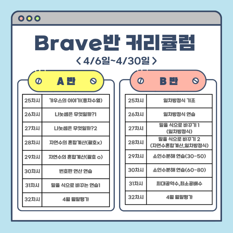 << 4월 정규반 커리큘럼 안내>>
