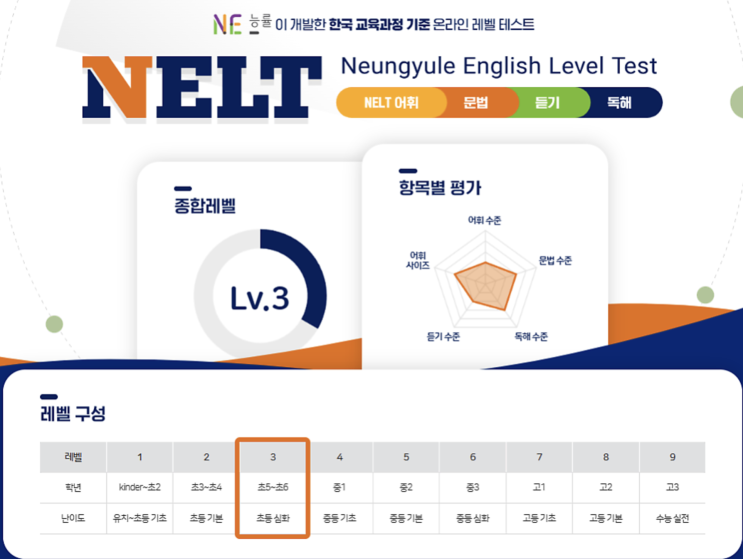 우리 아이 영어 실력을 객관적으로 확인하는 방법 안녕하세요. 리딩비 판교 대장점입니다. 영어 학습에서 가장 중요한 것 중 하나는 현재 우리 아이의 정확한 실력을 객관적으로 파악하는 것입니다. 단순히 시험 점수만으로는 아이의 영어 능력을 정확히 알기 어렵기 때문입니다. 그래서 리딩비 판교 대장점에서는 NELT 시험을 통해 학생들의 영어 실력을 체계적으로 진단하고 있습니다. NELT 시험이란 무엇인가? NELT는 Neungyule English Level Test의 약자로 능률에서 개발한 한국 교육과정 기준 영어 레벨 테스트입니다. 이 시험은 단순한 문제풀이 시험이 아니라 ✔ 어휘 ✔ 문법 ✔ 듣기 ✔ 독해 4가지 영어 핵심 영역을 종합적으로 분석하....... <img src="https://blogthumb.pstatic.net/MjAyNjAzMTZfMjQ4/MDAxNzczNjQyNzI3MjQ4.uY5hs3vBJNS4JP4F15bNouLJxMeIbxPwpCP5PMI7zywg.JJH3vOk-RrSzSkUsa-XuRwAbb-Drmxey0LzvMefXA20g.PNG/%BD%BA%C5%A9%B8%B0%BC%A6_2026-03-16_%BF%C0%C8%C4_3.31.57.png?type=s3" />