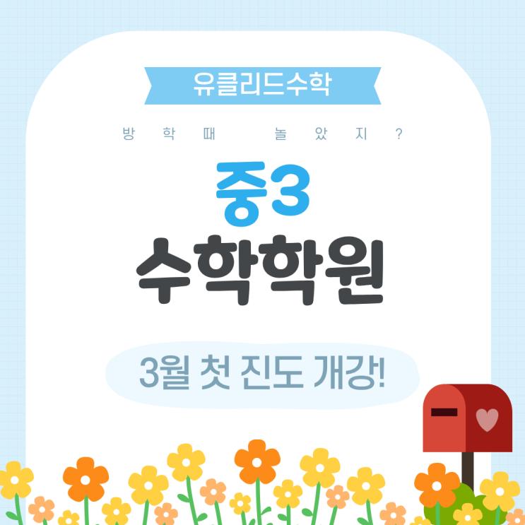 민락동 중3 수학학원 3월 첫 개강 유클리드 수학학원