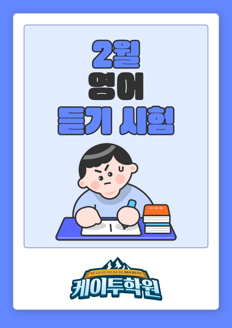 안녕하세요^^ 케이투학원입니다~ 2월 영어 듣기시험의 수상자들이 나왔습니다 열심히 달려온 여러분 모두에게 박수를 보냅니다^^ 3월달도 화이팅! <img src="https://blogthumb.pstatic.net/MjAyNjAzMThfNSAg/MDAxNzczODIwNTE3NDc0.miJAqBtIdb8fzRQJM6uDhBltDX22iAG9t-OCcq04X_4g.X3CDokypyLwbJ9Ow5uKZ1grH_5oCl1PbaaVuNhduLdsg.JPEG/%BF%B5%BE%EE-%B5%E8%B1%E2-001.jpg?type=s3" />