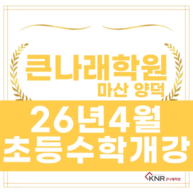 안녕하세요. 미래 인재양성의 리더 큰나래학원 마산 양덕점입니다. 2026년 4월부터 개강 예정 및 진행중인 초등 수학 강좌를 안내드립니다. *수학은 입학테스트 필수 입니다. *개별 수업, 반수업 등 희망하시는 다양한 강좌를 추가 개설 해 드릴수 있습니다. *수강 희망 과정 및 희망 수업 시간을 문의주시면 상세히 안내드리겠습니다. 양덕점KNR큰나래학원 ☎ 055-606-7880 ※ 수학 모든 과정은 2개월간 교재 1권을 완성합니다. 주3회 수업은 개념 2개월 수업 후 준심화 과정으로, 준심화 2개월 수업 후 다음 학년 혹은 다음 학기 개념 수업으로 이어지는 수업 입니다. 주2회 수업은 개념 2개월 수업 + 주1회 유형 수업을 병행하여 진행합니다. ....... <img src="https://blogthumb.pstatic.net/MjAyNjAzMThfMTIw/MDAxNzczODE2ODI1MDU4.qWHY6a7eGDJm_B6lNvnBSJpU7iuCEieZMijmJKBa-Qkg.KWrvCmuBbXjowaDNOsctFbopZ9rf0lGpBZONx1cGkswg.JPEG/%C1%A6%B8%F1%C0%BB-%C0%D4%B7%C2%C7%D8%C1%D6%BC%BC%BF%E4__%BA%B9%BB%E7%BA%BB-003_%286%29.jpg?type=s3" />
