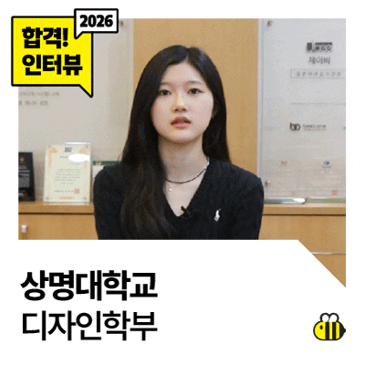2026학년도 상명대 디자인학부 합격 정시 합격생 인터뷰 인터뷰 미리보기 ─ 상명대 디자인학부에 지원하게 된 이유를 알려 주세요. 1학년 때는 전체적으로 디자인에 대해 폭넓게 배우고, 2학년 때부터 세부 전공을 선택해 심화적으로 배울 수 있다는 점이 좋다고 생각했기 때문입니다. ─ 실기 시험을 준비하면서 특히 신경 써서 연습했던 부분이 있다면 무엇인가요? 제가 면칠이 조금 오래 걸리는 편이어서, 실기 시험에서 시간을 안정적으로 쓰기 위해 스케치 시간을 줄이는 연습을 했던 것 같습니다. ─ 고사장 분위기는 어땠나요? 전체적으로 감독관분들도 친절하셨고, 주위 학생들도 모두 열의를 다해 그리는 분위기였습니다. 저도 거기에....... <img src="https://blogthumb.pstatic.net/MjAyNjAzMTlfNjEg/MDAxNzczODk5ODExMzkx.5xYg5kFuW8z6IrW4a5ngNp8xPSJ7143HdPFVvKHlnRAg.y79wWkPguJb-6WAuUmlvIk0Eas-jkNyjuZyET71S2Nwg.GIF/%C0%CC%C1%F6%BE%C8.gif?type=s3" />