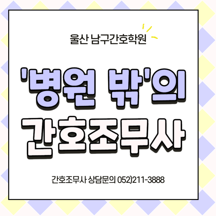 안녕하세요 남구간호학원입니다 간호조무사 자격증을 준비하면서 "나는 무조건 동네 의원이나 종합병원에만 가야 하나?"라고 생각하셨나요? 만약 병원 특유의 분위기가 본인과 맞지 않을까 봐 걱정이라면 이 글을 주목해 주세요! 간호조무사 자격증은 보건 의료 현장 어디서나 통용되는 '평생 커리어의 출발점'입니다 병원을 벗어나 활약할 수 있는 이색 취업처들을 소개해 드릴게요 ! 1. 새 생명의 첫 동반자, ‘산후조리원’ 아이를 좋아하고 섬세한 케어에 자신 있다면 최고의 선택지입니다. ■ 하는 일 : 신생아의 건강 상태 확인, 수유 보조, 산모의 회복을 돕는 업무를 합니다. ■ 장점 : 병원보다 분위기가 따뜻....... <img src="https://blogthumb.pstatic.net/MjAyNjAxMjdfMTE5/MDAxNzY5NDkyOTI4NjM5.A9E0e1CivgszL8w9VMmqFRxFPk9ITPjqiK4Oeh92qf4g.Bhe-5PMcsL7SJGD41IZIZL04hs8vxPN9kNb7Uvw5wEIg.PNG/%C1%A6%B8%F1%C0%BB_%C0%D4%B7%C2%C7%D8%C1%D6%BC%BC%BF%E4_-001_%2820%29.png?type=s3" />