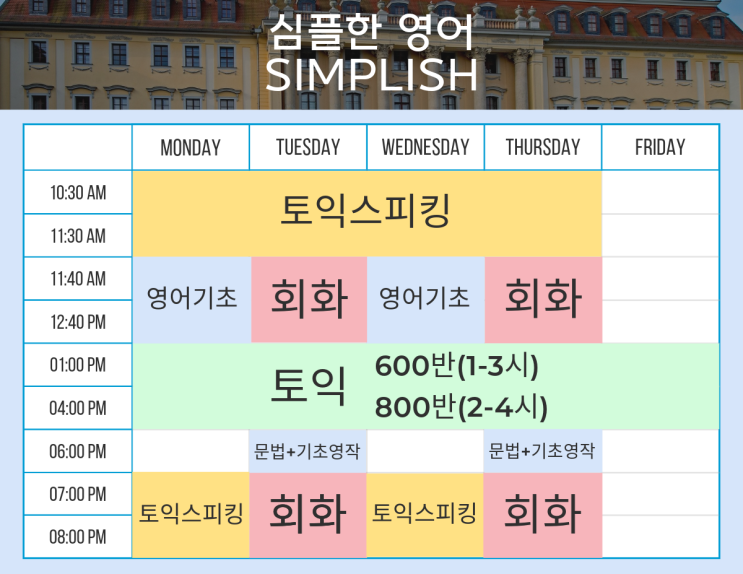 울산 성인영어학원 심플리쉬 수업시간