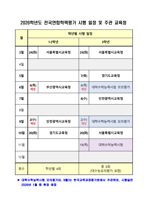 26년 전국 모의고사 일정 안내