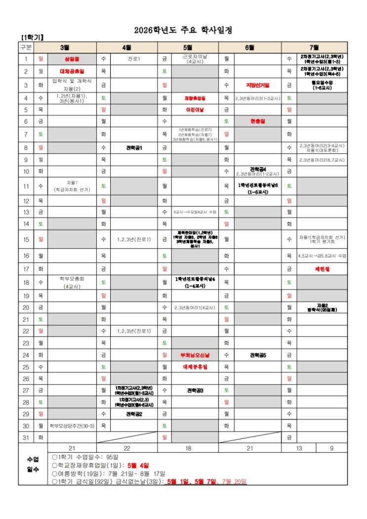 <배곧중 2026년 주요일정> 4월 27, 28일(월, 화) : 중간고사(2,3학년) 7월 1,2일(수,목) : 기말고사(2,3학년) 7월 20일(월) : 방학식 8월 18일(화) : 개학식 10월 1,2일(목,금) : 중간고사(2,3학년) 11월 16,17일(월,화) : 3학년 기말 12월 10,11일(목,금) : 1,2학년 기말 1월 7일(목) : 종업식 <img src="https://blogthumb.pstatic.net/MjAyNjAzMDJfMTUy/MDAxNzcyNDM4OTM0Nzk2.Dgi9jiUwd6Um-LrpT1aWrzaPDMYl-8rywO7TXBPfED8g.n-mKWnsYL1kNE7-TYCgbzIwrdekeTeyDDFEFs0MKjW4g.JPEG/2026%C7%D0%B3%E2%B5%B5_%C1%D6%BF%E4_%C7%D0%BB%E7%C0%CF%C1%A4_1.jpg?type=s3" />
