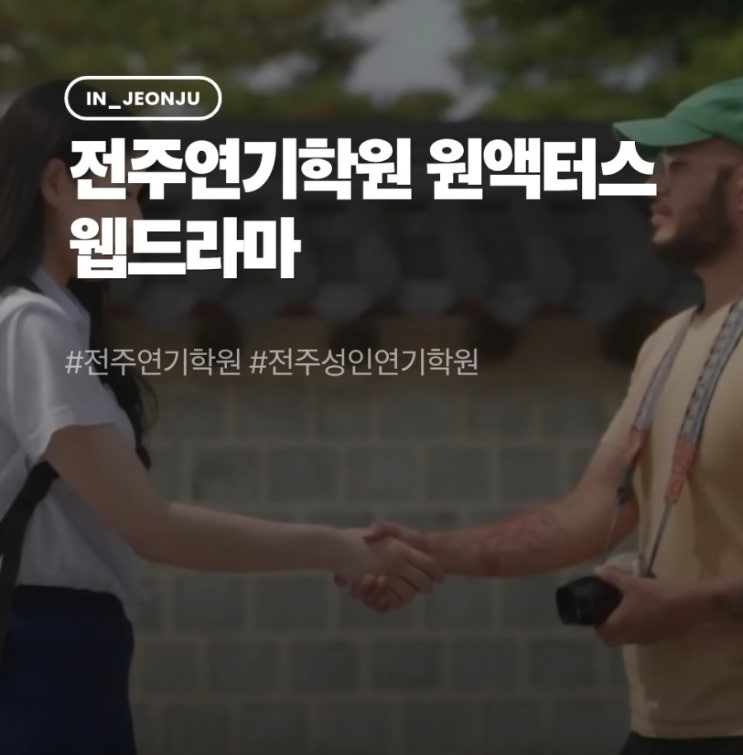 ✔️ 상담 전화 : 010-8959-8239 ✔️ 상담 카독ID : dk2219 전주연기학원 원액터스 전주한옥마을에서 웹드라마 촬영 전주연기학원 원액터스 영화연기아카데미 전주한옥마을에서 촬영한 수강생들의 웹드라마 카메라연기를 중점적으로 가르치고 있는 전주연기학원 원액터스는 여러 영상 업체들과 협업하며 광고나 웹드라마등의 제작에 함께 참여하고 있습니다. 전주에 카메라 연기 학원이 오직 원액터스 뿐이라 외부의 다른 영상 업체에서도 배우 섭외 문의가 많이 들어오는데요. 전주연기학원 원액터스는 수강생들의 프로필과 연기영상 포트폴리오가 전부 준비가 되어 있기 때문에 촬영 문의가 왔을 때 수강생들의 준비된 자료를 보내주면 업체에....... <img src="https://blogthumb.pstatic.net/MjAyNjAzMTZfMTE5/MDAxNzczNjE0MTE3Mzg0.0T02nJob7sg7hVzf9T5MfIvQ15wEDkPYSit_zuT_CBkg.-Onu3yil7Y32MG9u41VSPVpulZlkGD2z65wcwzQshdEg.JPEG/900%A3%DFScreenshot%A3%DF20260316%A3%DF073443%A3%DFCanva2.jpg?type=s3" />