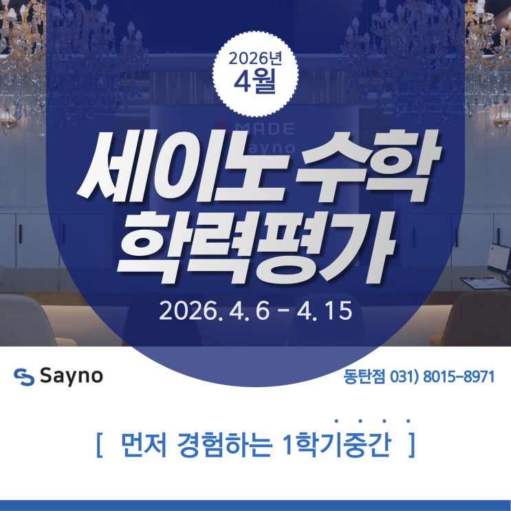 안녕하세요, 대치세이노 동탄점입니다. 요즘 상담을 하다 보면 이런 질문이 많습니다. “우리 아이, 지금 어느 정도 위치인가요?” 학교 시험은 아직 남아 있고, 개별 데일리 테스트만으로는 객관적인 비교가 어렵습니다. 그래서 저희 세이노학원에서는 전국 세이노 학력평가를 진행합니다. 전국 단위로 실력을 확인합니다 전국 세이노 학력평가는 세이노 학원 전 지점 학생들이 동시에 응시합니다. 다른 지역 학생들과 직접 비교 가능한 점수 지금 우리 아이가 어디에 위치해 있는지 정확하게 확인할 수 있습니다. 난이도는 ‘학교 시험보다 한 단계 위’ 학교 기출보다 조금 더 어렵게 출제됩니다. 이유는 하나입니다. 시험보다 어렵....... <img src="https://blogthumb.pstatic.net/MjAyNjAzMTlfNyAg/MDAxNzczOTA3MTgxNTE4._77-LOdhZlPt3C7BXp8d6hi8T6KRXsjtAKW69Ni_Uuwg.Ou1tPKJS3rbYPjXVhi8yj2W8EVEEHDTh5fCdIMhTH3gg.JPEG/6%BF%F9-%BC%BC%C0%CC%B3%EB%BC%F6%C7%D0%C7%D0%B7%C2%C6%F2%B0%A1_%B5%BF%C5%BA-001_%281%29.jpg?type=s3" />