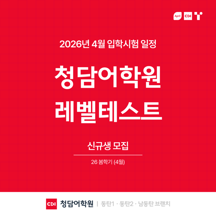 [남동탄청담어학원] 26 봄학기 4월 입학테스트 일정 안내
