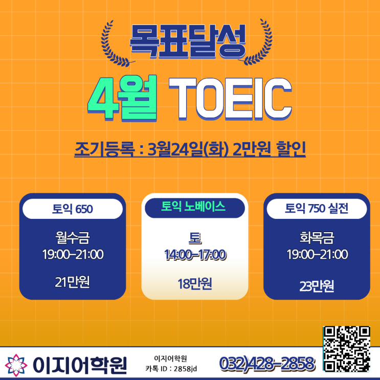 4월 토익 조기등록 마감 임박! D-DAY 7 !! [인천이지어학원 / 토익전문학원 / 토익노베이스 / 토익650+ / 토익750+/길병원부근 토익학원]