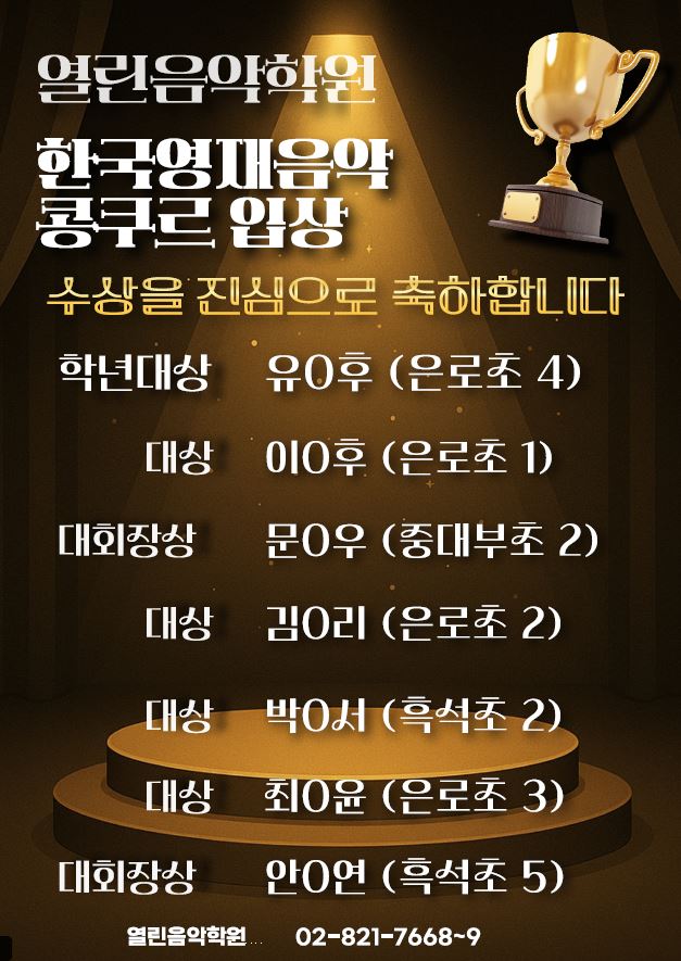 [열린음악학원] 콩쿨 수상 소식