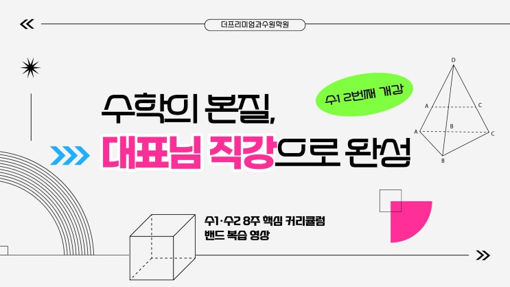 등록번호 4399 안녕하세요! 우리 아이들의 잠재력을 확실한 성적으로 증명하는 더프리미엄 과수원 학원입니다. 오늘은 우리 학원의 아주 특별한 현장을 살짝 공개하려고 해요. 바로 대표님이 직접 진두지휘하시는 '수학 1' 수업 시간입니다! ✍️ "수학 1, 왜 대표님이 직접 가르치실까?" 고등 수학의 꽃이자 가장 큰 고비인 수학 지수와 로그, 삼각함수, 수열까지... 아이들이 난생처음 보는 개념들에 머리를 싸매기 시작하는 시기죠. 이 중요한 골든타임을 놓치지 않기 위해, 저희 대표님이 직접 분필을 잡으셨습니다! 수1·수2, 8주면 충분합니다! 저희는 수1(4주) + 수2(4주), 총 8주간의 체계적인 스케줄....... <img src="https://blogthumb.pstatic.net/MjAyNjAzMTJfMjgy/MDAxNzczMzA1OTAwMjQ4.fFUz4wXT4EnMlDQE3KNrULxSB6looKsA5fUEkVWCExog.A4NcFue_B1ZarpXVab_MP5gKTV21mIgbqEz1PnI8jF4g.JPEG/1.jpg?type=s3" />