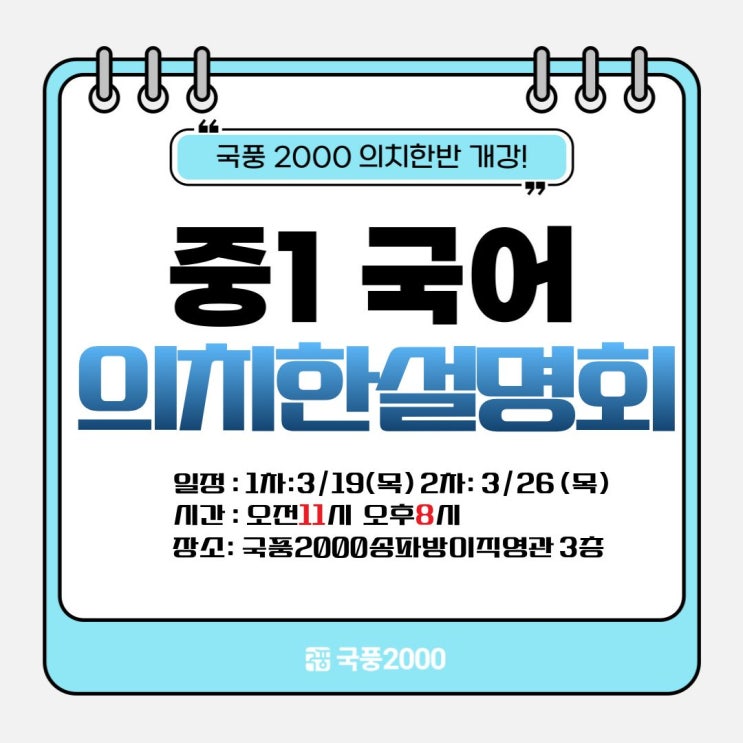 [송파구 국어학원] 국풍2000 중1국어 의치한반 개강설명회