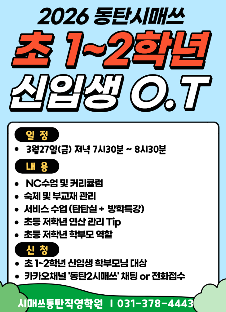 동탄시매쓰 저학년설명회(외부생) & 신입생 학부모 OT안내(재원생)