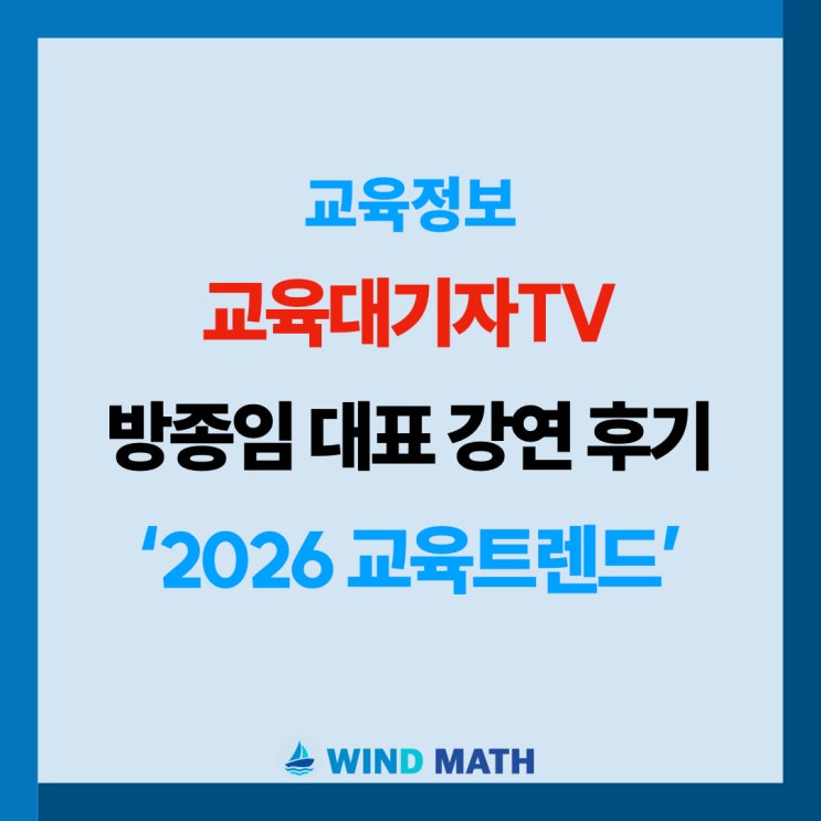 안녕하세요. 용인 수지 신봉동 초중등수학학원 윈드수학입니다. 새학기가 시작된 요즘, 학부모님들 사이에서 교육 이야기가 단연 화두이지요. 정보는 넘치고, 교육 정책과 입시 제도가 계속 바뀌다 보니 부모 입장에서는 무엇이 맞는 정보인지 혼란스럽기도 합니다. 얼마 전, 쎈엄마에서 주최한 교육 강연에 다녀왔습니다. 바로 유튜브 교육대기자TV 방종임 대표님의 강연이었습니다. 학원에서 아이들을 가르치면서 많은 학부모님을 뵙고 상담하며 동시에 아이를 키우는 한 명의 학부모 입장에서 이번 강연은 단순한 교육 정보 이상의 의미가 있었습니다. 우리 아이와 학원에서 만나는 우리 윈드수학 아이들, 앞으로 만나게 될 아이들을 어떻게 대....... <img src="https://blogthumb.pstatic.net/MjAyNjAzMTNfNDQg/MDAxNzczMzk5NzgwNTk4.FpHc2ZaGN8Yo3oExFwLsG7aq66aXLz5gJKxPjei0kcsg.RdXmfLoIQRCQRtyqUL71RBIWy2LFX2KIS8XwndoY_TMg.JPEG/%C4%AB%B5%E5%C5%DB%C7%C3%B8%B41.001.jpeg?type=s3" />