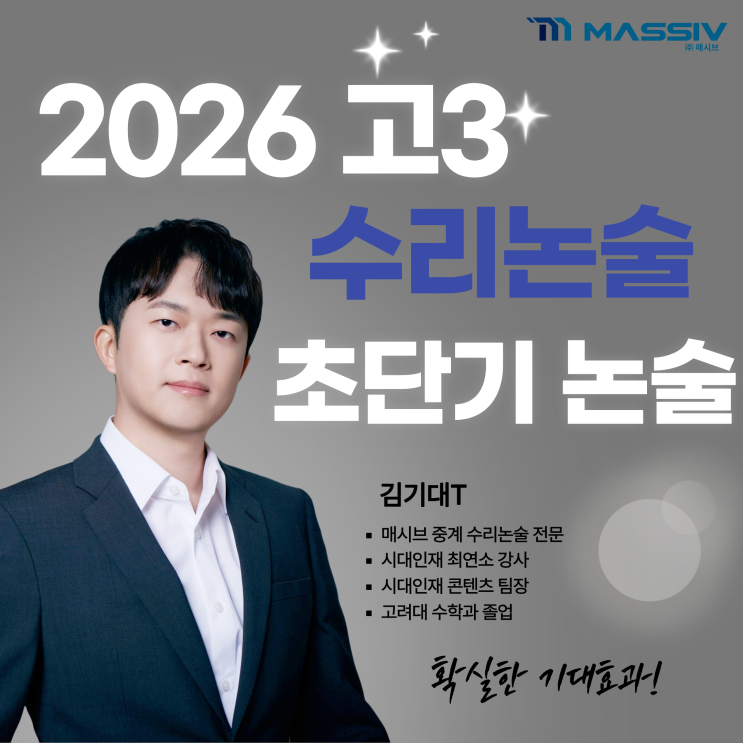 수리논술 첨삭이 중요한 이유 │ 매시브 김기대T 수리논술 수리논술을 준비하는 학생들이 가장 많이 하는 고민이 있습니다. "문제 풀이는 이해했는데 답안을 어떻게 써야 할지 모르겠어요." 수리논술은 단순히 문제를 푸는 시험이 아니라 풀이 과정을 논리적으로 설명하는 시험입니다. 그래서 많은 학생들이 풀이 능력은 충분하지만 답안 작성에서 감점을 받는 경우가 많습니다. 매시브학원에서는 이러한 문제를 해결하기 위해 김기대T 수리논술반을 운영합니다. 매시브학원 중계점 김기대T 수리논술반 ▶개강일 : 3/8(일) ▶시간표 : 매주 [일] AM 9:30-13:00 매시브 수리논술 대표강사 김기대T ️매시브 중계 수리논술 전문 ....... <img src="https://blogthumb.pstatic.net/MjAyNjAzMTRfMjEw/MDAxNzczNDczMjM3NjQ2.Pivn6J2aAmjiejFTTlicNlWS15qIckHjienVFhkgUkUg.a4iuXv4dwdO8WI85djjZSTSQQxcQVIaWey2Ticqxk90g.PNG/%C1%DF%B0%E8_%B1%E8%B1%E2%B4%EB_%BD%E6%B3%D7%C0%CF.png?type=s3" />