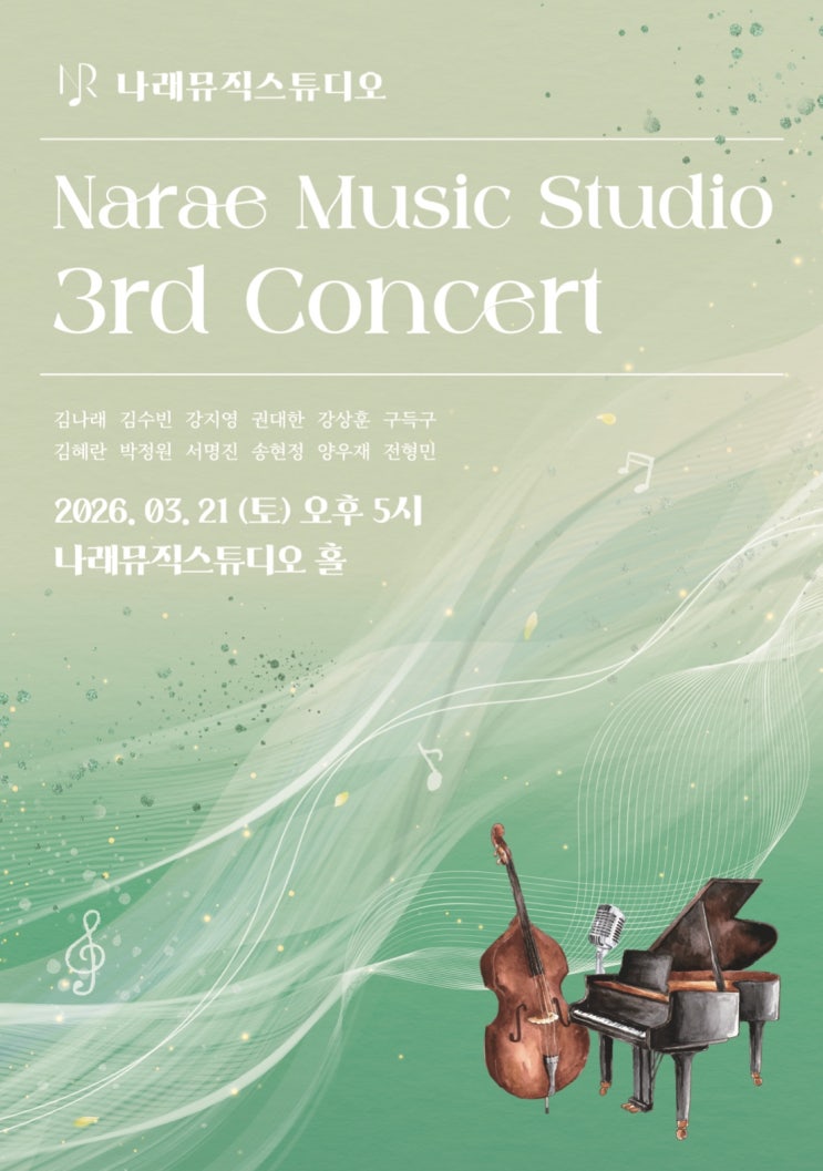 안녕하세요 :) 벌써 3월의 중순으로 접어들었네요 오늘은 대전 성인피아노 학원 나뮤스의 세번째 연주회 준비 과정을 보여드릴거에요 대전 성인 피아노 전문학원인 나래뮤직스튜디오에서는 연 1-2회 학원 내에서 작은 연주회를 개최한답니다 이번에는 따듯한 봄날 3월 21일에 나뮤스 "세번째 콘서트" 를 시작합니다 !! 또한 혼자 치는 클래식 곡 말고도 콘트라 베이스와 함께 피아노가 듀오로 연주를 하는 재즈피아노 팀들이 이번에도 압도적으로 많았어요-! 역시 원장 직강 재즈피아노 클래스분들 실력 믿고갑니다 ㅎ.ㅎ 평일에는 레슨을 받으시고 주말인 토요일 일요일까지 학원에 나오셔서 재즈팀 합주를 해주신 성인 직장인 학생분....... <img src="https://blogthumb.pstatic.net/MjAyNjAzMTZfMTEx/MDAxNzczNjUyMTc1OTY0.YK1xV0gbohLwiaIdyvb3ToPPuDJwYXLwhk0uXs9_ktYg.KaZM4jzrqFsT3A0tP3JjTGT2MxgTK64U2kZig5w5OBAg.JPEG/KakaoTalk_20260316_175718001.jpg?type=s3" />