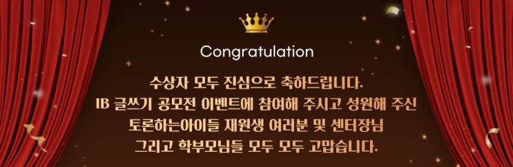 독서논술 · 독서토론 · 토론논술 · 디베이트논술 토론하는아이들 & 리드타임 글쓰기 공모전 단상 “모든 위대한 변화는 작은 우연에서 시작된다.” – 톨스토이 – 토론하는아이들 & 리드타임 IB 글쓰기 공모전 이후, 아이들이 달라졌습니다. 평소 말이 적고 질문을 주저하던 아이들이 수상 이후에는 먼저 손을 들고 질문하고 토론에 적극적으로 참여합니다. 100분 수업이 순식간에 지나갈 만큼 아이들의 집중도와 참여도가 눈에 띄게 달라졌습니다. 처음에는 “왜 갑자기 이러지?” 하고 의아했지만 이유는 분명했습니다. 공모전 수상이 아이들에게 강력한 자극제가 된 것입니다. 수상 현수막을 학원에 걸어 두었더니 아이들이 주말에 와....... <img src="https://blogthumb.pstatic.net/MjAyNjAzMDhfMTMx/MDAxNzcyOTM3NDA3MjY3.RxCJH7Sj59wgRSruywTMBbbNZchzs3zfQxLA5effn_og.NqGraGqsv_A0V1DP9qKEI3YLE-A5sPTbFMFL3d8pX8Eg.JPEG/00000000000000_%281%29.jpg?type=s3" />