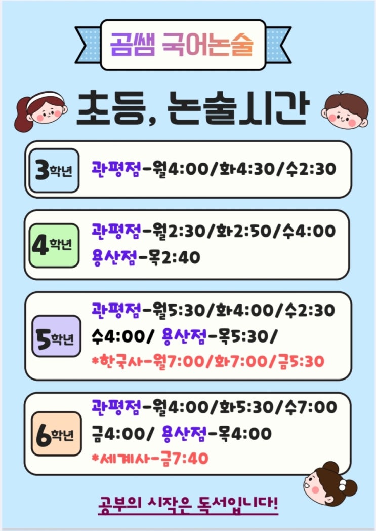 관평/용산동 엄마들이 곰쌤논술을 고집하는 이유(초등논술 시간표)