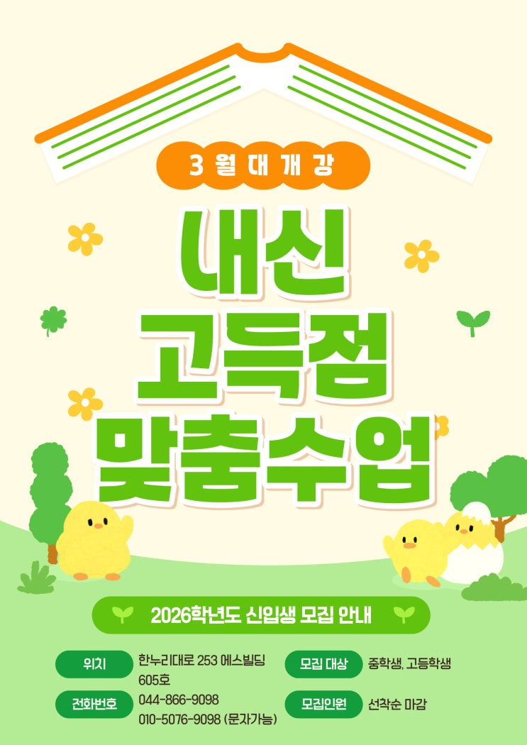 EiE 고려어학원 세종나성 캠퍼스에서 3월 새학기를 맞아 신규생을 모집합니다. ^^ 자세한 사항은 캠퍼스로 상담전화 주세요~ ^^ <img src="https://blogthumb.pstatic.net/MjAyNjAyMjZfNjkg/MDAxNzcyMDkzNDY0ODgw.Bg72_Tm2kwrWpdN8mJjQDbOnSiA_Lb8mWgB5C6hZKyEg.bkQW-JQ3eXIU6AXZk9x_ggf8-CZCT1RVcJjixmJR6Rsg.PNG/26%B3%E2_3%BF%F9_%BD%C5%C7%D0%B1%E2_%B8%F0%C1%FD_%281%29.png?type=s3" />