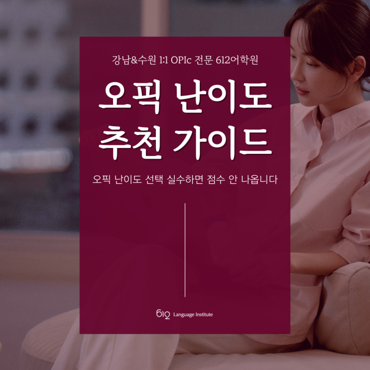 안녕하세요. 오픽 전문학원 612어학원입니다. 오픽(OPIc)은 시험 시작 전에 진행되는 자기평가(Self Assessment) 단계에서 난이도를 어떻게 설정하느냐가 상당히 중요한 전략이 됩니다. 많은 분들이 “일단 쉬운 난이도로 하면 안전하지 않을까?” 라고 생각하시지만, 실제로는 목표 등급에 맞는 난이도를 선택해야 원하는 점수를 받을 가능성이 높습니다. 따라서 난이도 선택의 기준, 목표 등급별 추천 난이도, 시험 중 난이도 조정 팁까지 정리해보도록 하겠습니다. ☺️ 목차 1) 오픽 난이도(Self Assessment)의 개념 2) 난이도에 따른 문제 유형 차이 3) 목표 등급별 추천 오픽 난이도 4) 시험 중 난이도 조정 단계 이해하기 5) 난이도....... <img src="https://blogthumb.pstatic.net/MjAyNjAzMDRfNjIg/MDAxNzcyNTk4NDc0NDA0.9vA-gEbS7gMAQBgmUBvy1uMEV0cH-t2B5NzzedcT2q8g.IwtkeQZJUBZiW_oLS5-nppVWGSmJbjs0PsNHutb85vIg.PNG/%BF%C0%C7%C8-%B3%AD%C0%CC%B5%B5-001.png?type=s3" />
