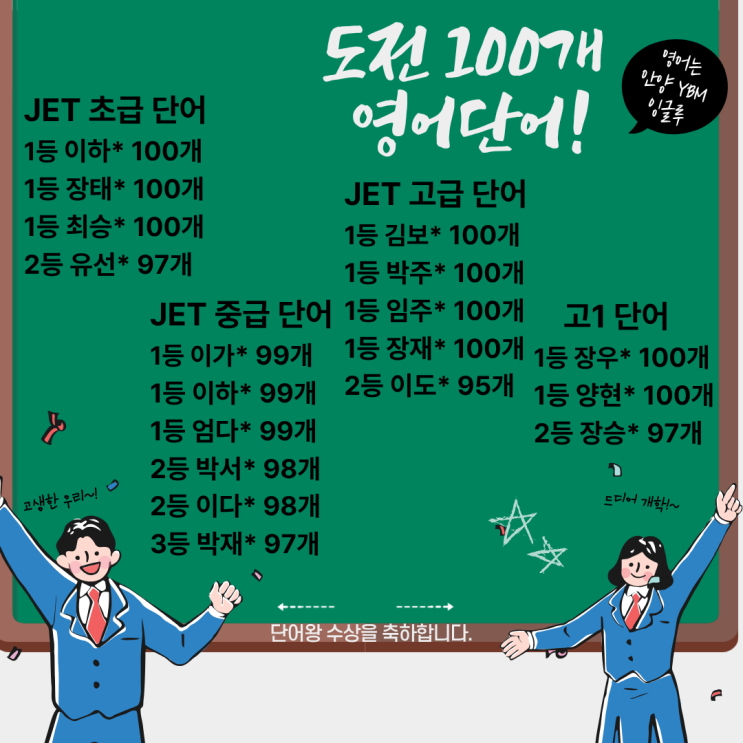 안녕하세요 안양 YBM 잉글루 영어학원입니다. 1월에 이어 2월에도 100개의 영어 단어 도전 프로젝트가 진행되었습니다. 방학 기간 동안 정규 수업과 함께 추가로 단어 학습을 진행하며 총 200개의 단어를 함께 학습하는 시간을 가졌습니다. 처음에는 많은 단어를 외우는 것이 쉽지 않았지만 꾸준히 도전하는 과정 속에서 학생들 스스로 어휘력이 확실히 늘었다는 것을 느낄 수 있었습니다. 수업 중 독해를 진행하다 보면 “선생님 이 단어 단어왕에서 외웠던 단어예요!” 라고 말하며 막힘없이 해석하는 아이들의 모습이 참 인상적이었습니다. 단어를 꾸준히 암기한 덕분에 독해 속도와 이해력도 자연스럽게 향상되는 것을 확인할 수 있었고 지도....... <img src="https://blogthumb.pstatic.net/MjAyNjAzMDVfMjA4/MDAxNzcyNjQzMjMyNjgz.TMuxS3t_urTCzHPn5MDHcawhhzqcpcd40PfDQVedK4Ig.qJZ9qb1cyQwYp4KuMzq0QeVN_rpePwXHK4eZeSFplyAg.PNG/dddd.png?type=s3" />