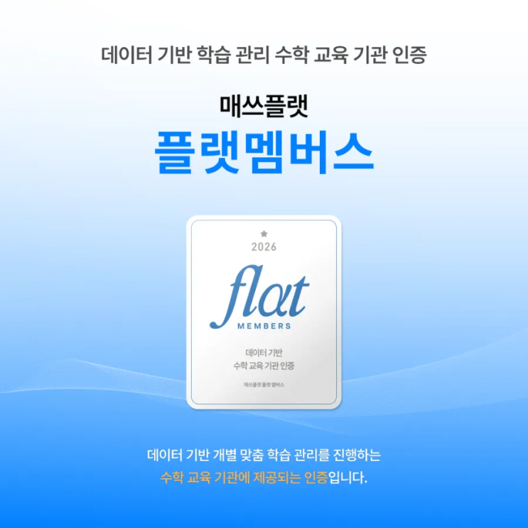 안녕하세요, 중산동 수학전문학원 좋은수학 름T입니다. 좋은수학은 매쓰플랫 프로그램을 활용하여 학생별 개별학습에 중점을 두고 수업을 진행합니다. 진도만 빠르게 나가는 것이 아니라, 이해하는것이 우선입니다. 그렇게 차곡차곡 하다보니 매쓰플랫에 우수 교육기관으로 인증을 받게 되었습니다. 새 학기가 시작되었습니다. 더욱 힘내서 알차게 수업 해 가겠습니다.^^ <img src="https://blogthumb.pstatic.net/MjAyNjAzMDRfMTcy/MDAxNzcyNTkxMDEyNjUy.YnLUKidyi7r9d0W4WAtzxiQSVY370YQB92xrYjyhODUg.QCSCNbQXY1xHxyq1CNaW2pSrOvSXS4d-e5xuHQID_YUg.PNG/900%A3%DF1772590017862.png?type=s3" />