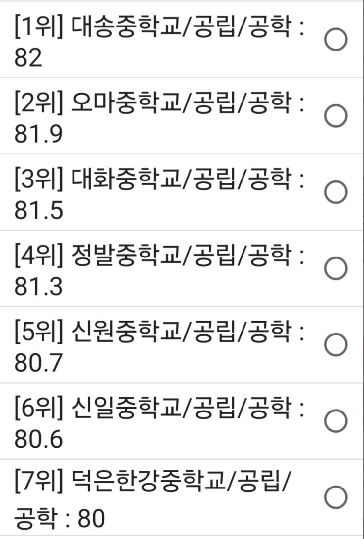 2024년도 고양시 중학교 성취도 평가 순위