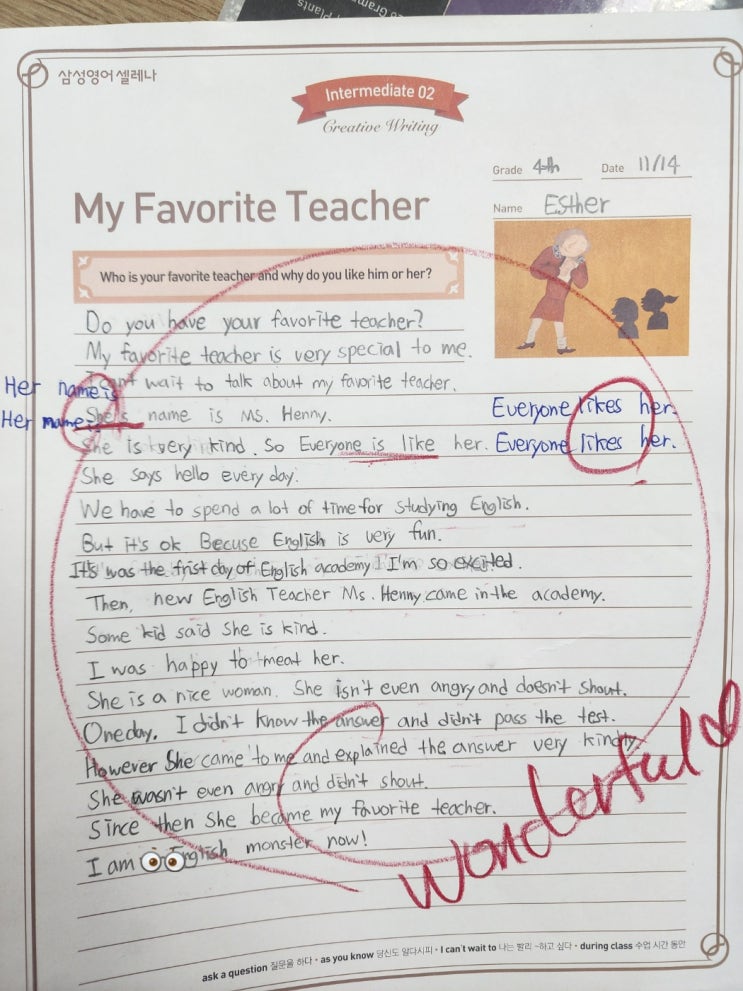 [별내삼성영어학원] 영어에세이 - Intermediate 02 / 초4 / Esther