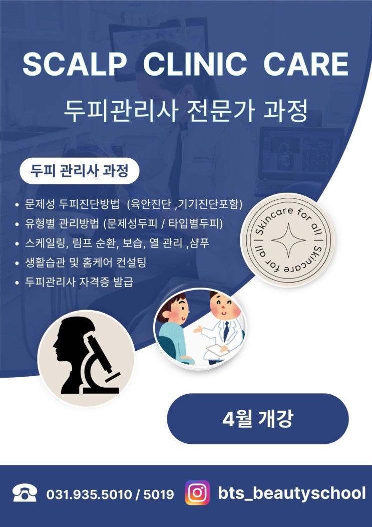 파주두피관리사과정 4월개강 두피 전문가로 시작해보세요 요즘 탈모, 지루성 두피, 민감성 두피로 고민하시는 분들 정말 많죠. 그만큼 두피 관리에 대한 관심도 꾸준히 높아지고 있습니다. 그래서 파주 BTS미용학원에서 4월 두피관리사 전문가 과정을 개강합니다 이론만 배우고 끝나는 수업이 아닙니다. 실제 현장에서 바로 활용할 수 있도록 실무 중심으로 준비한 과정입니다. ✔ 두피관리사 과정에서는 무엇을 배우나요? • 문제성 두피 진단 방법 (육안 + 기기 진단) • 두피 타입별 맞춤 관리 방법 • 스케일링, 림프순환, 보습, 열관리, 샴푸 테크닉 • 홈케어 및 생활습관 상담 방법 • 두피관리사 자격증 발급 단순 수료가 아니....... <img src="https://blogthumb.pstatic.net/MjAyNjAzMDVfMTQ2/MDAxNzcyNjk0MDA4ODIx.AEk5FkZV5njQJW_bS1ashJjNuTpUB5Ip54jYTpdfE3Mg.cLSvMomGUolVg4paU4xhonajAPKtTI1br4mP6EVvqK0g.JPEG/55317947-f4f2-4e2f-83b3-cc207293e04e.jpg?type=s3" />
