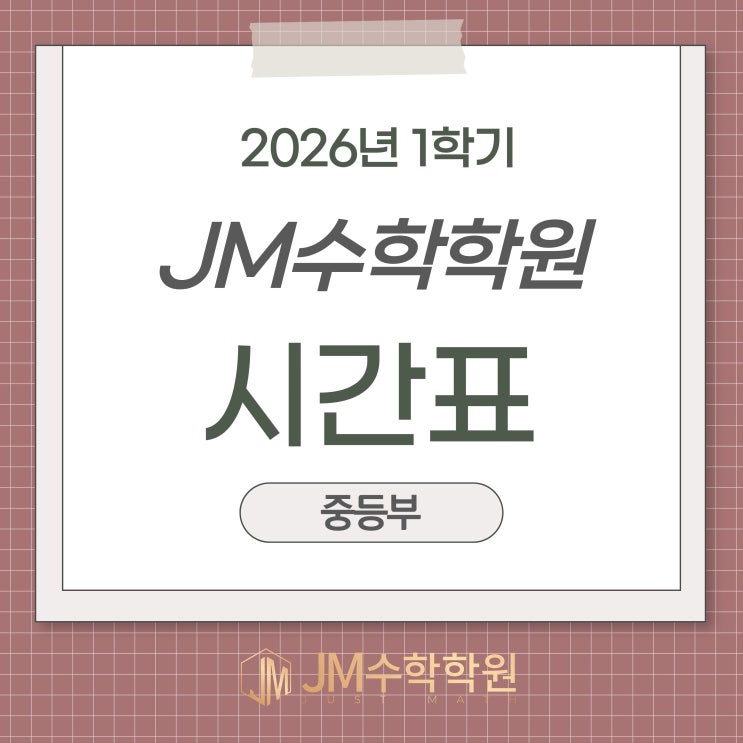 안녕하세요. JM수학학원 입니다. 2026년 1학기 중등부 시간표 안내드립니다. + 주1회 의무클리닉은 필수입니다! 마음을 담아 가르칩니다. 자세한 상담문의 010.2677.8992 <img src="https://blogthumb.pstatic.net/MjAyNjAzMDRfMjUw/MDAxNzcyNjE0NDA1ODg5.6exXdJyNNoDKVNzsyYMhOR_Wu_v7l7YydlcDucHImY8g.DTqULZOEMBI34LQKcHCVKis0lErsoSCzSrSy3Mui_0Yg.JPEG/5.jpg?type=s3" />