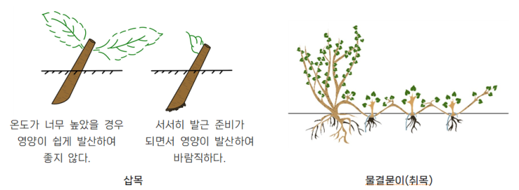 [조경식재] 무성번식, 무성번식 종류 - 영양번식, 삽목, 휘묻이(취목), 접목, 포기나누기(분주, 분근묘), 조직배양