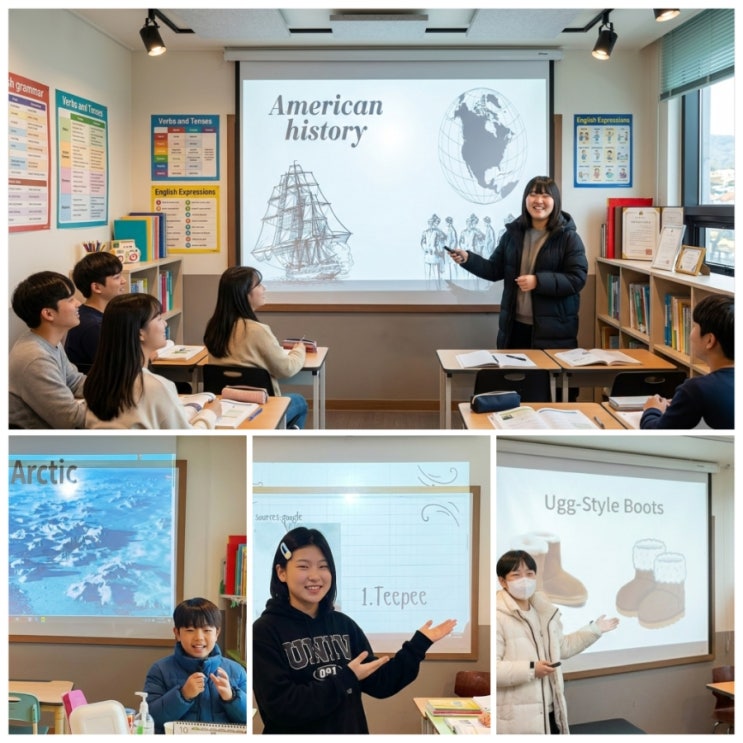 배우는 것을 넘어 본인의 언어로 표현할 줄 아는 진짜 실력! 공터영어 강릉노암센터의 프레젠테이션 수업 오늘 이사벨라 티처스 클래스 중 GR 104 강의실의 열기는 그야말로 '갓(God)벽'했습니다! 교재를 마치고 각자 선택한 주제로 직접 서는 무대, 우리 수업의 하이라이트인 PT 발표 시간이었는데요. 학생 모두 개성이 넘쳐서 눈을 뗄 수 없었네요. 실생활로 들어온 북극(Arctic) 본인이 직접 쓰고 있는 사례와 연결해 '북극'을 우리 곁으로 가져온 생생한 스토리텔링! 디테일의 끝판왕 슬라이드 설명이 필요 없을 만큼 완벽한 시각 자료로 메시지를 팍팍 꽂아준 압도적인 퀄리티! 단순히 배우는것을 넘어, 본인의 언어로....... <img src="https://blogthumb.pstatic.net/MjAyNjAzMDRfMTI3/MDAxNzcyNjMwOTQ2ODg2.zZIXRo52CivYyVt-NVPD05UYFTJz2vOVYCLm8wUnbRog.7yNIHhOenUqsDLy9HzThOJbi-gighT_W5dMKEzrjbC0g.JPEG/900%A3%DF1772630095114.jpg?type=s3" />