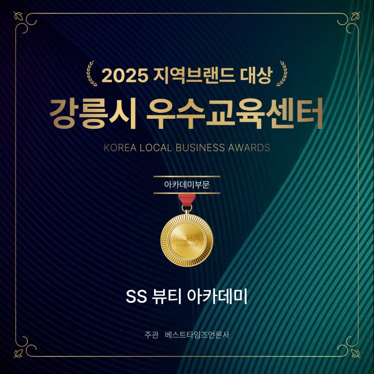 안녕하세요!! 저희 학원이 베스트타임즈언론사 2025 지역브랜드 대상 강릉시 우수교육부분 대상에 선정되었습니다 또한 강원도 학원공제회 주관 지역교육발전에 기여한 공로를 인정 받아서 강원도지사 표창장도 받게 되었습니다.. 너무너무 감사합니다! 이번 수상에는 SS뷰티아카데미 강사진 그리고 저희를 믿고 함께해 주신 수강생 여러분 덕분입니다 지방의 작은 학원이지만 지역 청소년과 성인 학습자들의꿈을 위해 꾸준히 노력해 온 결과를 외부에서 인정해 주셔서 매우 감사드립니다. SS뷰티아카데미 검색후 기사까지 살펴보시면 미연쌤이 어떤 맘으로 학원을 운영했는지 엿볼수가 있을겁니다 SS 뷰티 아카데미, 2025 강릉....... <img src="https://blogthumb.pstatic.net/MjAyNjAzMDRfMzAw/MDAxNzcyNjA2ODg5MTU3.TrlpH6licy2HRm0aHg7cYlpceKCPbBAA4nOBeIEiJTYg.obB4lH85SRjANvf4VyUdRFovH7KvtdtiAdovzVSBab0g.JPEG/KakaoTalk_20260304_150209883.jpg?type=s3" />