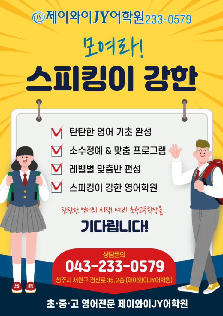 [청주 개신동 영어학원 제이와이와이JY어학원] 스피킹이 강한 영어학원, 결과가 다릅니다.