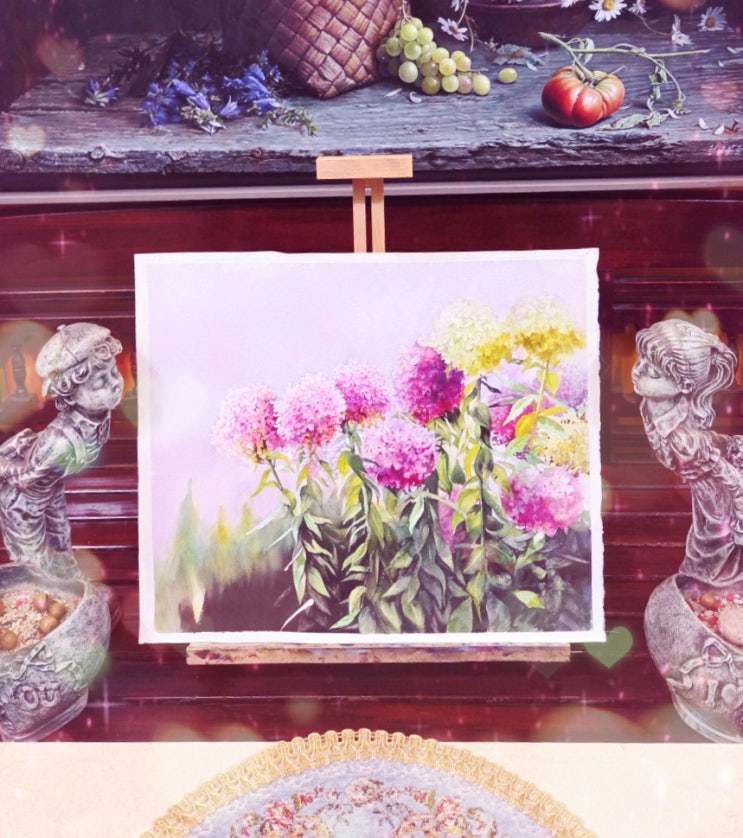 [청주수채화] 가경동 황금분할에서 피어난 수채화 수국, 3월의 따스한 색채