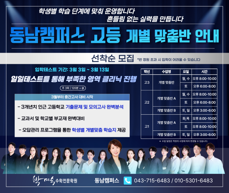 [박미숙수학학원 동남캠퍼스] 중등·고등 개별맞춤반 모집 안내
