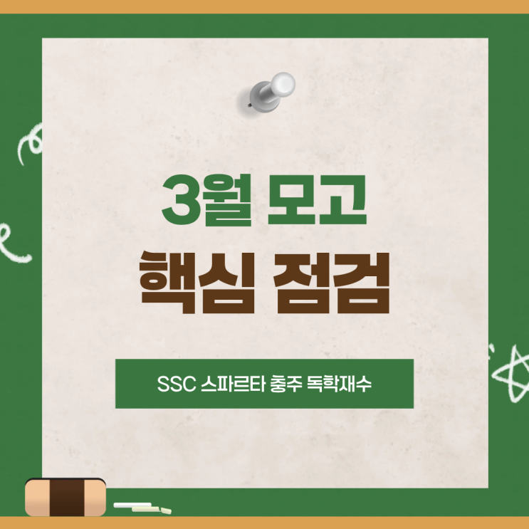 안녕하세요. SSC 스파르타 충주연수점입니다. 2027 수능을 준비하는 수험생에게 3월 학력평가는 올해 처음 치르는 전국 단위 시험입니다. 3월 교육청 모의고사는 전 범위 시험은 아니지만 지금까지 공부해 온 기초가 실제 시험에서 어떻게 작동하는지를 처음 확인하는 시험입니다. 그래서 3월 모의고사는 등급이나 백분위 자체보다 어느 영역에서 흔들렸는지 개념 부족인지, 시간 관리 문제인지 공부 과정에서 무엇을 보완해야 하는지를 확인하는 데 의미가 있습니다. 결국 이 시험은 성적을 확정하는 시험이 아니라 남은 1년 동안의 공부 방향을 점검하는 출발점이라고 볼 수 있습니다. 3월 모의고사는 시험이 아닙니다 3월 모의고사가 가까워지....... <img src="https://blogthumb.pstatic.net/MjAyNjAzMDRfMTA0/MDAxNzcyNjEwNDM5NTUy.rp89Uj4vp0tV3k7AbGI93tG7c6C7WVp_3o4TPJ_OqUYg.GS62VeUpsIxZ_9UhKwqhCmh_zDuFnk7mk8eGT_tJyPYg.PNG/1.png?type=s3" />