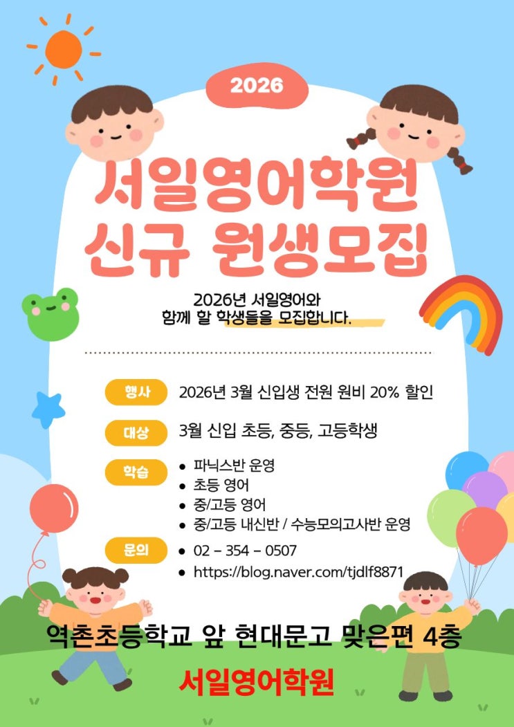 2026년 새로운 일년이 시작되었습니다♡ 상담.수업... 눈.코 뜰 새 없이 바쁘지만 행복한 하루하루입니다♡ 신입생들 천천히 잘~적응하며. 새로운 일년을 시작합니다♡ 아직 늦지않았습니다~~~!!!! 상담문자 주세요♡ 010.7456.0579 #은평구영어 #은명초영어 #은명초 #초1영어 #초3영어 #파닉스#충암초 #명지초 #예일초 #응암동영어학원 <img src="https://blogthumb.pstatic.net/MjAyNjAzMDRfMTQw/MDAxNzcyNTk5OTk4MDkw.GPyXr2v2IzRBZJSEsIVPiR1eu5ASoMqSWpF5zZuVWO4g.l7LTTOBIjKXsyzPeJEqD3mabIvB0CT9z0vt8lXZtM0Ig.PNG/900%A3%DF%C7%CE%C5%A9_%B1%CD%BF%A9%BF%EE_%B2%C9_%C0%CF%B7%AF%BD%BA%C6%AE_%C4%B6%B8%AE%B1%D7%B6%F3%C7%C7_%BA%BD_%C0%CE%BD%BA%C5%B8%B1%D7%B7%A5_%C6%F7%BD%BA%C6%AE%A3%DF20260302%A3%DF205725%A3%DF0000.png?type=s3" />