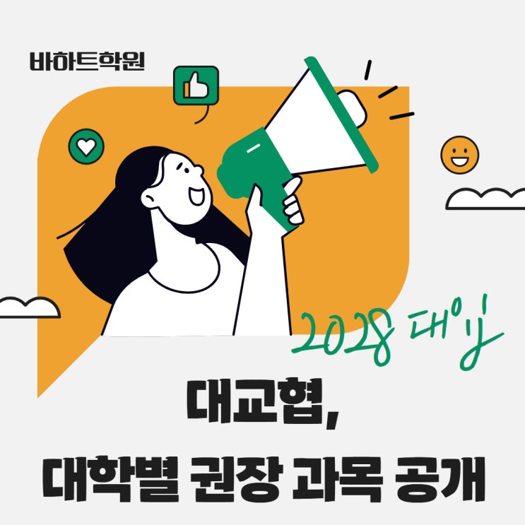 2028 대입, 과목 선택이 대학 입시의 시작입니다. 안녕하세요, 은평구 바하트 학원입니다. 2028 대입은 2022 개정 교육과정과 고교학점제가 전면 적용되는 첫 해입니다. 그래서 대학들이 미리 안내하는 추천 과목이 점점 중요해지고 있습니다. 한국대학교육협의회(이하 대교협)는 45개 대학의 학과별 추천 과목을 정리해 공개했습니다. 각 대학별로 흩어져 있던 정보를 권역별로 묶어 보여주기 때문에, 학생은 지역별, 학과별로 어떤 과목이 중요한지 한눈에 확인할 수 있습니다. 이 자료에서 말하는 권장 과목은 반드시 들어야 하는 필수 과목을 뜻하지 않습니다. 하지만 전공 준비 계획을 세울 때 참고하면 큰 도움이 됩니다. 학교에서도 학생....... <img src="https://blogthumb.pstatic.net/MjAyNjAyMjhfOTUg/MDAxNzcyMjQ2MzY2Nzkw._jBoRpRJ6_lQBcG8T2spAXqwpDax4qNJgtlpqsiS3d8g.lVs2kv3Nke_WeY5dSaBrn4Nu2fdF0T6gJzx-acNZE2cg.JPEG/%C1%A6%B8%F1%C0%BB_%C0%D4%B7%C2%C7%CF%BC%BC%BF%E4_1.jpg?type=s3" />