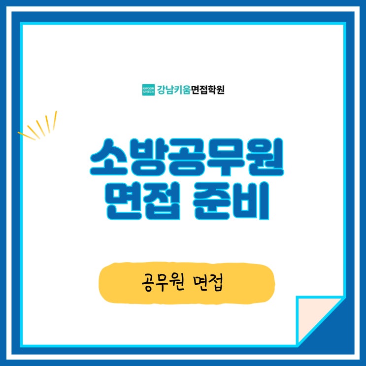 안녕하세요 강남키움스피치면접학원입니다. 3월 7일 소방 필기 시험을 시작으로 2026년 소방공무원 공개 채용이 본격적으로 시작됩니다. 필기 합격자들은 체력 - 면접의 과정을 거쳐 최종 합격으로 갈 수 있는데요. 2023년 채용부터 면접이 차지하는 비중이 커진 만큼, 필기-체력의 배수가 낮더라도 면접을 어떻게 준비하느냐에 따라 그 결과는 크게 달라질 수 있습니다. 소방공무원 면접은 크게 3분 발표와 인성 면접으로 진행됩니다. 3분 발표는 주로 국민 안전을 위해 소방 조직에서 관심을 갖고 해결 해야 할 다양한 화재/사고 예방 관련 이슈에 대한 지원자의 견해를 묻습니다. 인성 면접에서는 지원동기·자기소개와 같은 기본 면접 질문과....... <img src="https://blogthumb.pstatic.net/MjAyNjAzMDVfMjA3/MDAxNzcyNjc4OTQxMzA5.F52Td3AlfU0xJpMZAlmSWvY7ld6T0JLC0cBvp9LuqK8g.9tiBGcCf9LWqHlmLT41ErqISBF4qPhheeagA3vOeEhYg.JPEG/001.jpg?type=s3" />