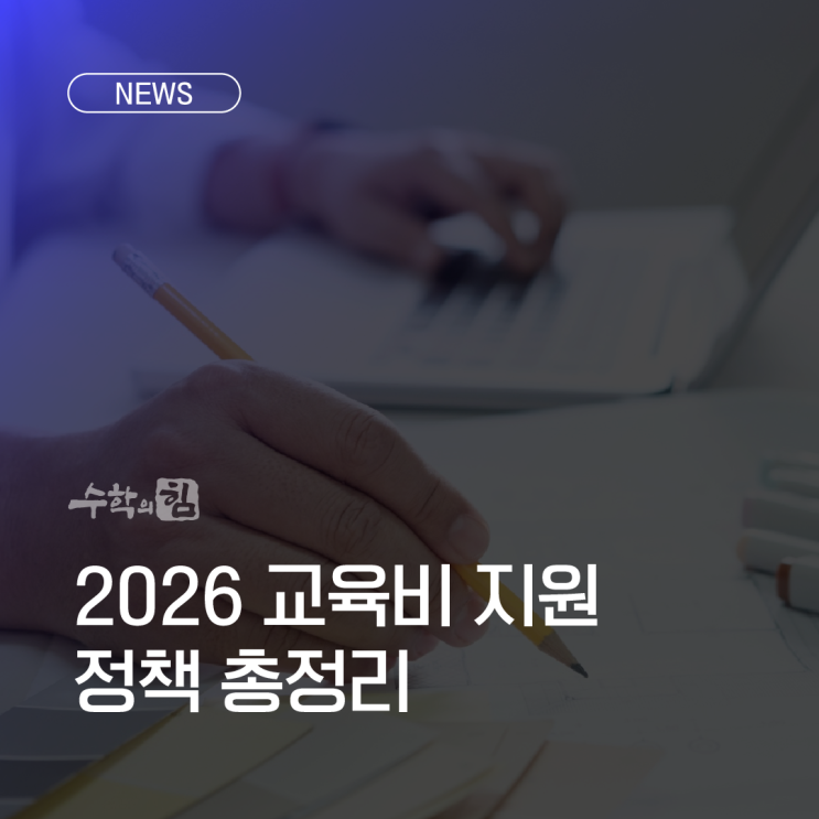 안녕하세요 여러분 초격차 수학의힘입니다. 2026 교육비 지원 정책 총정리 학부모 교육비 부담 줄이는 정부 제도 아이를 키우는 가정이라면 누구나 한 번쯤 교육비 부담을 크게 느끼게 됩니다. 유치원 비용, 어린이집 비용, 학용품비, 방과후 프로그램까지 생각보다 많은 비용이 들어가기 때문입니다. 이런 부담을 줄이기 위해 정부에서는 학부모 교육비 부담을 완화하는 다양한 교육지원 정책을 운영하고 있습니다. 특히 2026년에는 유아교육 지원과 돌봄 정책이 확대될 예정이라 많은 학부모들의 관심을 받고 있습니다. 이번 글에서는 2026년 기준 학부모들이 꼭 알아야 할 교육비 지원 정책을 정리해보겠습니다. ✅ 유아 무상교육 확대 정책 최....... <img src="https://blogthumb.pstatic.net/MjAyNjAzMTBfMTIg/MDAxNzczMTA2NjUzMTYy.S2CBgpX7X6hI73IFbIXCfu7zudLAxlDGTqLrZgAKB8Ag.SVww_k9HJ6Dx2_Rmxo4jvYWq9SIV17nM0K4XHl0bgdgg.PNG/%B4%EB%C1%F6_1.png?type=s3" />