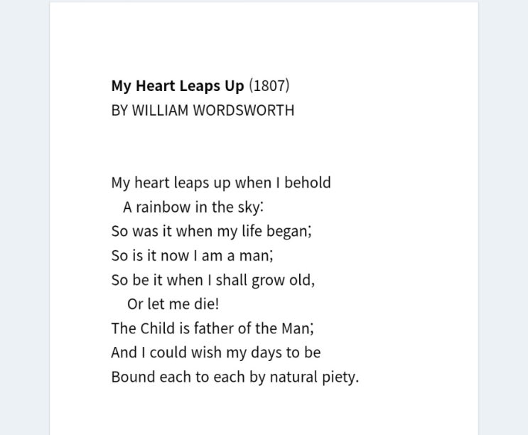 My Heart Leaps Up (1807) 좋은 시, 아동문학 The Child is father of the Man
