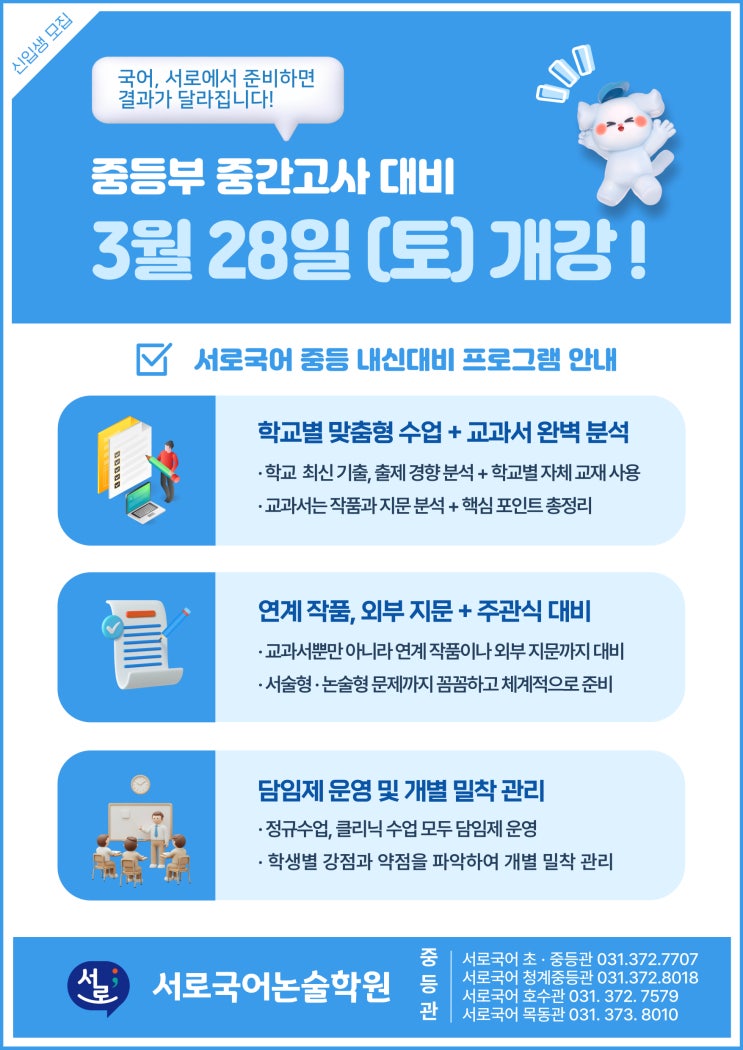 동탄국어학원 I 서로국어 중등 내신대비 개강 안내