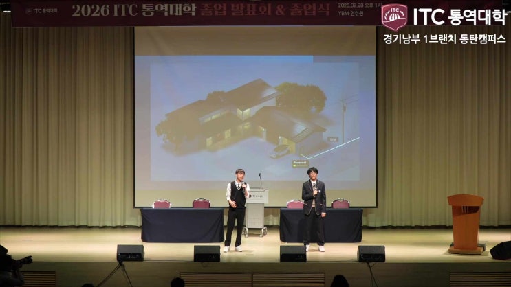 2026년 2월의 마지막 날, ITC 졸업발표회가 진행되었습니다. 올해 총 졸업생은 90명이었으며, 그중 동탄캠퍼스에서는 20명의 졸업생을 배출했습니다. 동탄캠퍼스 졸업팀은 총 4팀으로, 이번 졸업발표회에서는 통역대학에서 경험할 수 있는 네 가지 수업을 주제로 발표를 준비했습니다. 올해도 수준 높은 발표를 보여준 동탄캠퍼스 학생들의 모습을 무편집 영상으로 보여드립니다. 1. 강의통역 2. 더빙 3. 토론 4. 영상통역 마지막 졸업발표회의 무대에 서기까지, 크고 작은 장벽들을 극복해 온 스무 명의 동탄캠퍼스 학생들에게 아낌없는 박수와 큰 사랑을 보냅니다. ITC의 영어 수업은 누구나 들을 수 있지만, ITC 통역대학 동탄캠퍼스에는 선별....... <img src="https://phinf.pstatic.net/image.nmv/blog_2026_03_04_3909/v9TL0RTvcz_05.jpg?type=f480x480" />