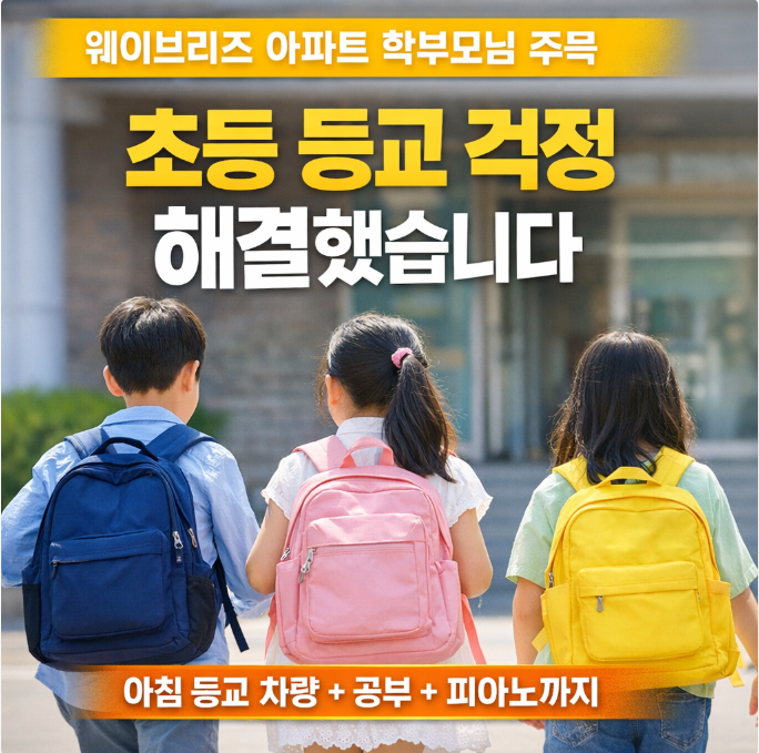 기장 웨이브리즈 아파트 등교 고민, 엠투엠영어수학학원 & 더피아노학원이 함께 해결합니다. 기장 웨이브리즈 아파트에 거주하시는 학부모님들과 상담을 하다 보면 가장 많이 나오는 이야기가 있습니다. “초등학교가 멀어서 아이 등교가 매일 고민이에요.” 특히 초등 저학년의 경우 혼자 등교하기에는 거리나 동선이 걱정되고, 그렇다고 매일 아침 학부모님이 등교를 시켜주기도 쉽지 않은 것이 현실입니다. 출근 준비와 동생 등원, 집안일을 하다 보면 아침 시간은 늘 전쟁 같은 시간이니까요. 그래서 이번에 웨이브리즈 아파트 학부모님들의 등교 고민을 조금이나마 덜어드리고자 저희 엠투엠영어수학학원과 더피아노학원이 함께 작은 준....... <img src="https://blogthumb.pstatic.net/MjAyNjAzMTVfMTc1/MDAxNzczNTc3NTU3MDcz.XYRoGkc7rGxSmM-rZMierFTVf4Ji99z148EowKbCALkg.1oeZhDDJmsiUSE5jaEYeejwi6n1yCfwiije0fA1hs0og.PNG/image.png?type=s3" />